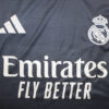 Real Madrid 2025 2026 deplasman forması, sadelik ve zarafeti aynı anda yansıtıyor. Koyu gri zemin üzerine işlenmiş karbon detaylı doku, formaya derinlik ve özgünlük kazandırıyor. Omuzlarda yer alan siyah şeritler ve göğüs kısmındaki klasik arma, formanın karakteristik Real Madrid ruhunu vurguluyor.